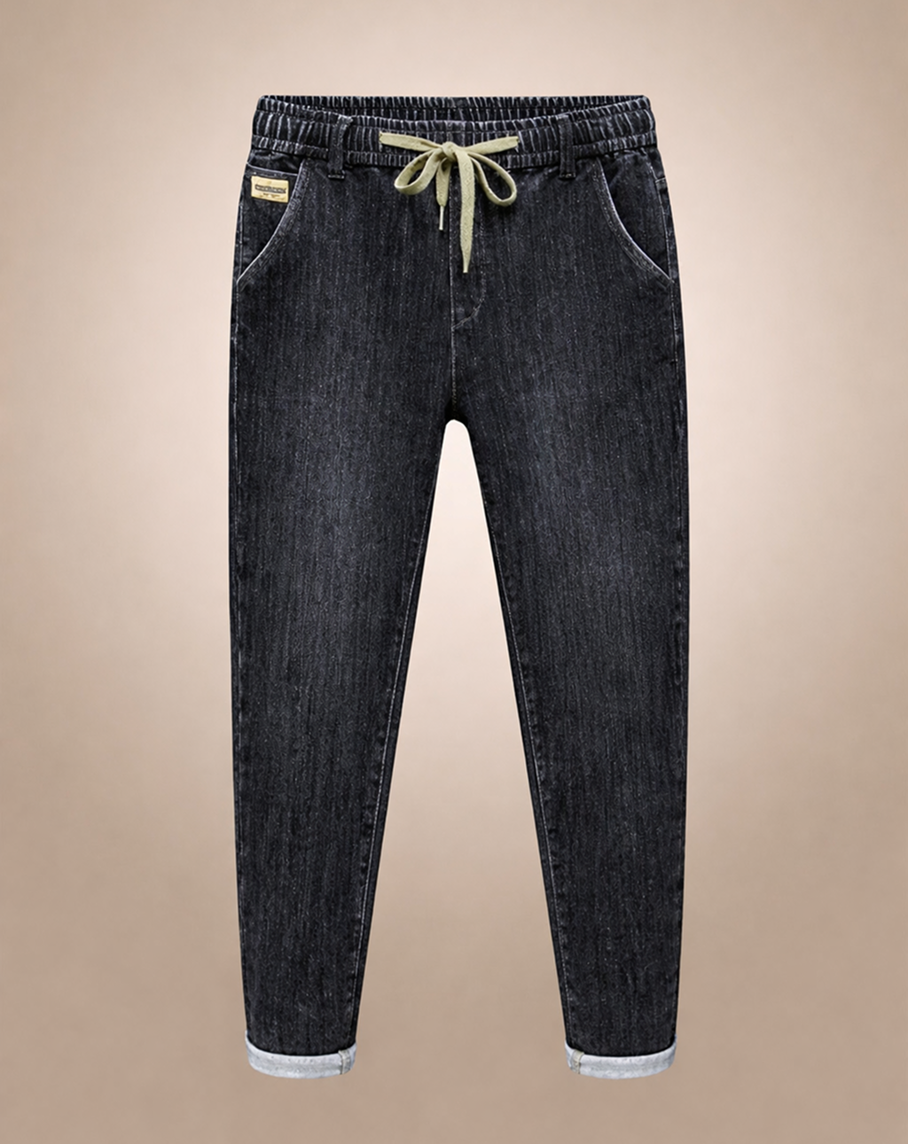 Whether you're aiming for a polished semi-formal vibe or a relaxed weekend style, the ObsidianFlex Tapered Denim Pants adapt to every outfit with elevated ease.